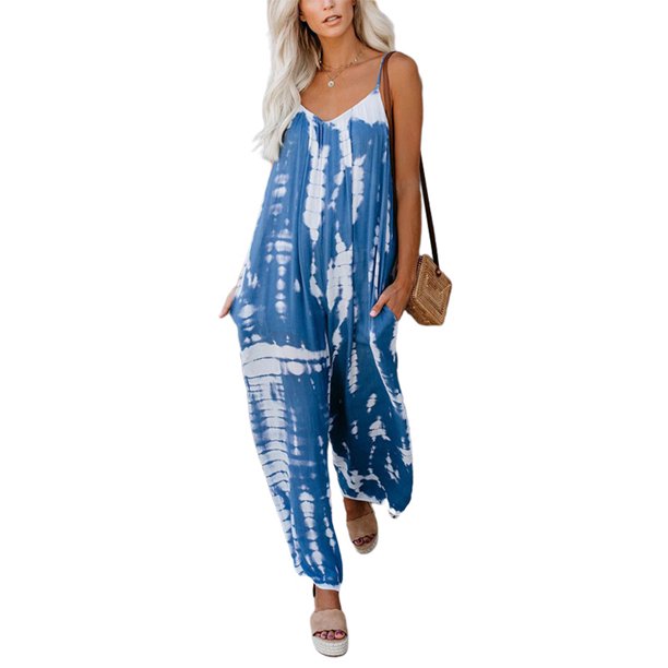 Amavo Avamo Loose Fit Jumpsuits For Trendy Women Casual Summer Beach Tie Dye Jumpsuit Playsuit Rompers Blue Xl Us 12 14 Walmart Com Walmart Com